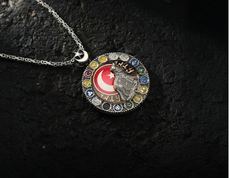 Aslanlı Gümüş Kolye, gücün, cesaretin ve asaleti temsil eden şık bir tasarımdır. 925 ayar gümüşten el işçiliğiyle üretilmiş olup, dikkat çekici detayl..